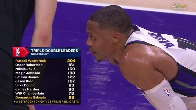 本场比赛,国王队后卫威斯布鲁克攻下23分16篮板10助攻的三双数据,这是他职业生涯的第204次三双,高居历史三双榜第一位。