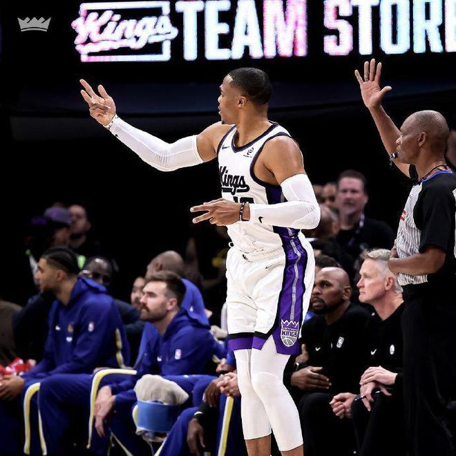 国王这边威少则梦回巅峰,首发打了35分钟,13投9中,拿到23分16篮板10助攻的三双,生涯第204次三双,依然高居NBA历史第一位。最后阶段,威少的防守也立功,直接破坏了对手的传球杀死了比赛,让现场球迷全力起立欢呼。德罗赞这次拿到25分,替补席上的蒙克也有21分,施罗德18分7篮板7助攻。